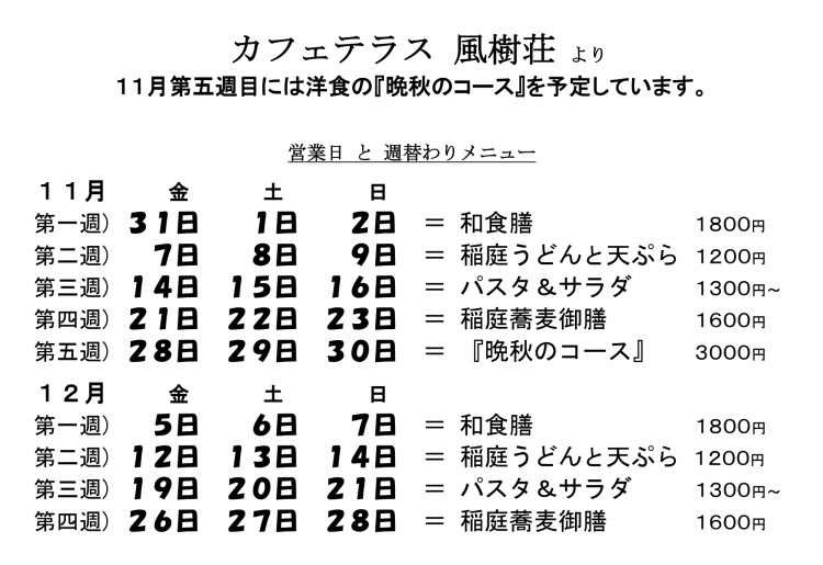 <<週替わりのメニューのイメージをご覧いただけます>>